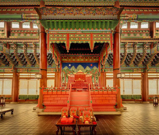 A line of twenty-seven kings ruled the Joseon dynasty during its 518-year history. Guided by Confucian philosophy, which emphasized personal virtue, a highly ordered system of social rank, and strict adherence to ritual practices, the Joseon court commissioned many works of art for ceremonial and commemorative purposes. Lavish screen paintings formed a backdrop for court rituals and formal occasions. Elaborately illustrated books known as royal protocols documented royal events in great detail. Ranging from imposing works of calligraphy by King Jeongjo (ruled 1776–1800) to the finest ceramics and costumes, the objects on view in this gallery demonstrate the functions and essential characteristics of the art of the Joseon court, as well as the court's role in shaping Korean art and culture.